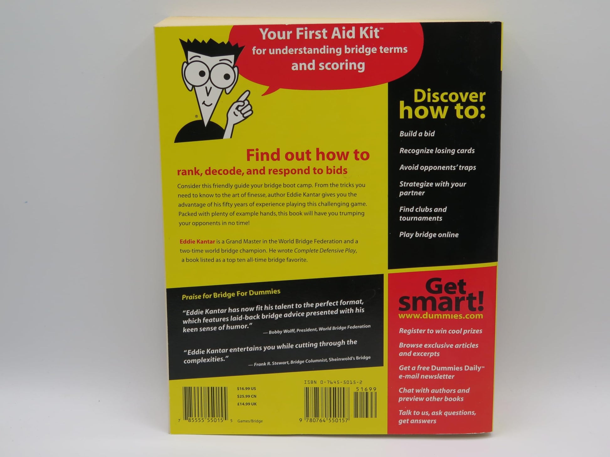 If you’re an absolute bridge beginner, you need the hand-held tour of the game that Bridge For Dummies can give you. Take your time getting to know the fundamentals, carefully examine the real-life examples, and get a feel for the basics before you start to play. Even if you have played bridge before, this book still has much to offer you. Author Eddie Kantar condenses his fifty years of experience with the game into tips and hints that can make you a better player.