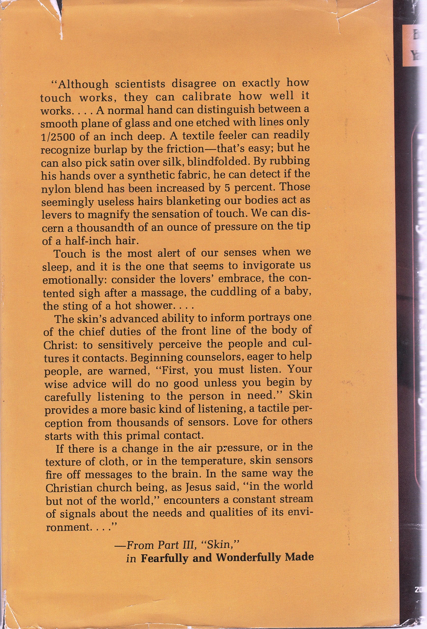 Mysterious, intricate, pulsing with energy... The human body is an endlessly fascinating repository of secrets. The miracle of the skin, the strength and structure of the bones, the dynamic balance of the muscles . . .your physical being is knit according to a pattern of incredible purpose. In Fearfully and Wonderfully Made, renowned surgeon Dr. Paul Brand and best-selling writer Philip Yancey explore the human body. Join them in a remarkable journey through inner space -- a spellbinding world of cells, systems, and chemistry that bears the impress of a still deeper, unseen reality. This Gold medallion Award-winning book uncovers eternal statements that God has made in the very structure of our bodies, presenting captivating insights into the Body of Christ., ISBN13:9780310354505 ISBN10:0310354501 Material Type:hardcover