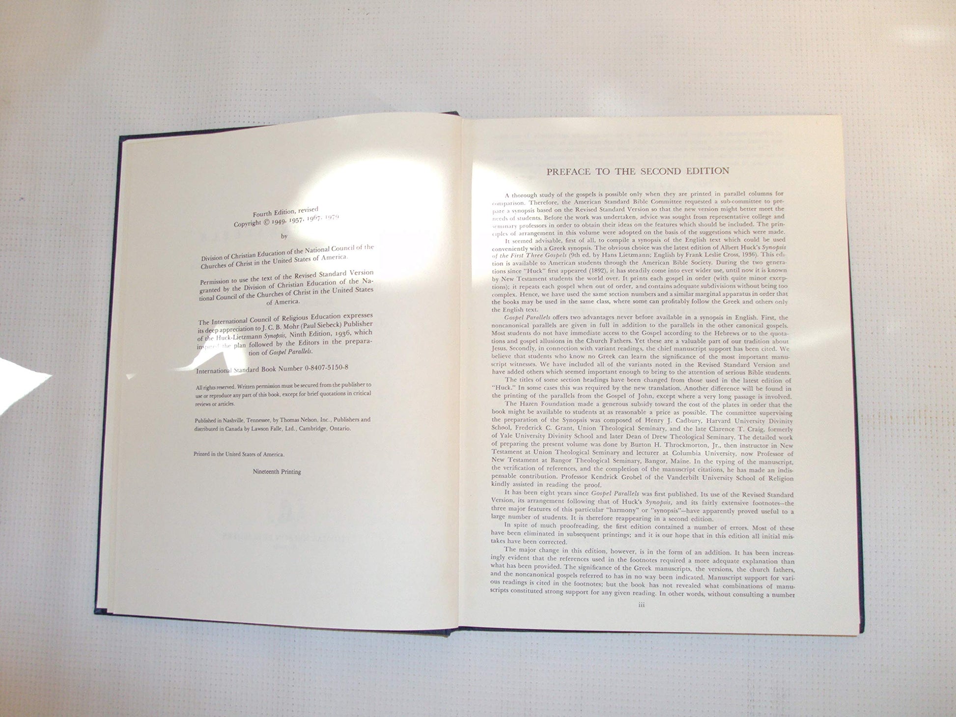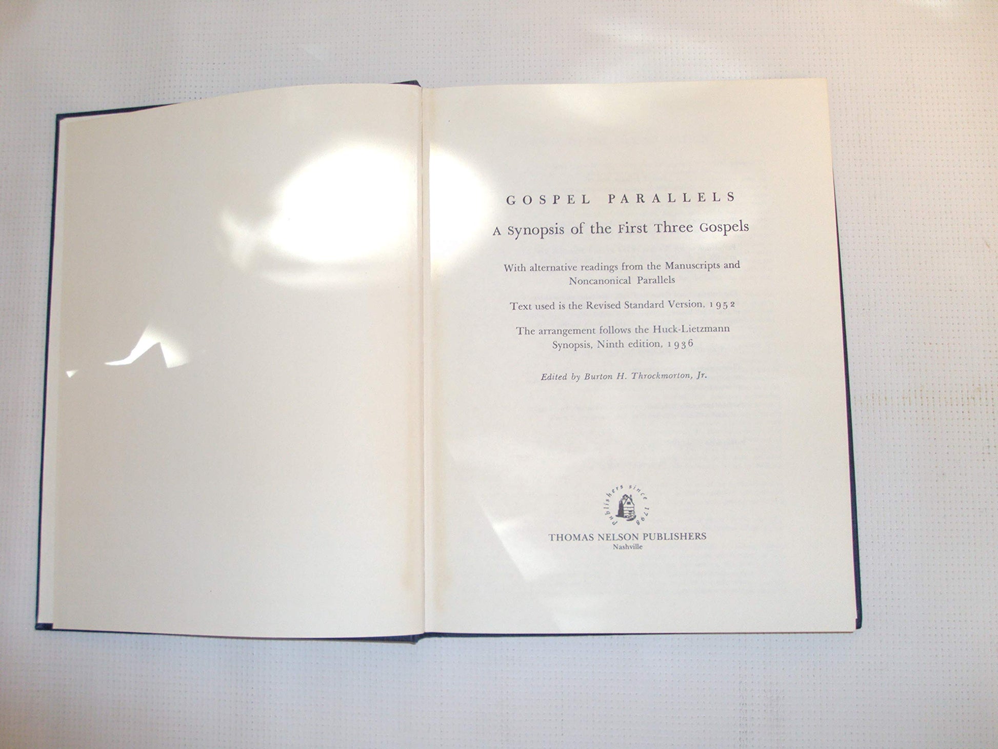 s/t: : A Synopsis of the First Three Gospels with Alternative Readings from the Manuscripts and Noncanonical Parallels: Text Used is the RSV, 1952: The Arrangement Follows the Huck-Lietzmann Synopsis, 9th ed., 1936