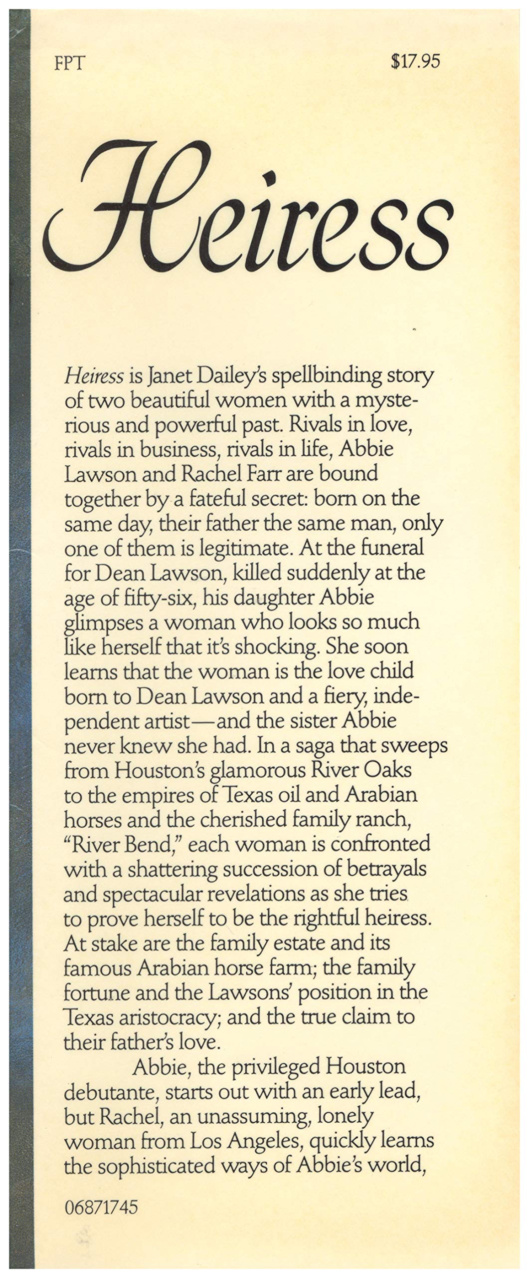 Rivals for their father's love, social position, and the rightful claim to the large family fortune, two beautiful sisters are bound together by a fateful secret--one of them is illegitimate, ISBN13:9780316170925 ISBN10:0316170925 Material Type:hardcover