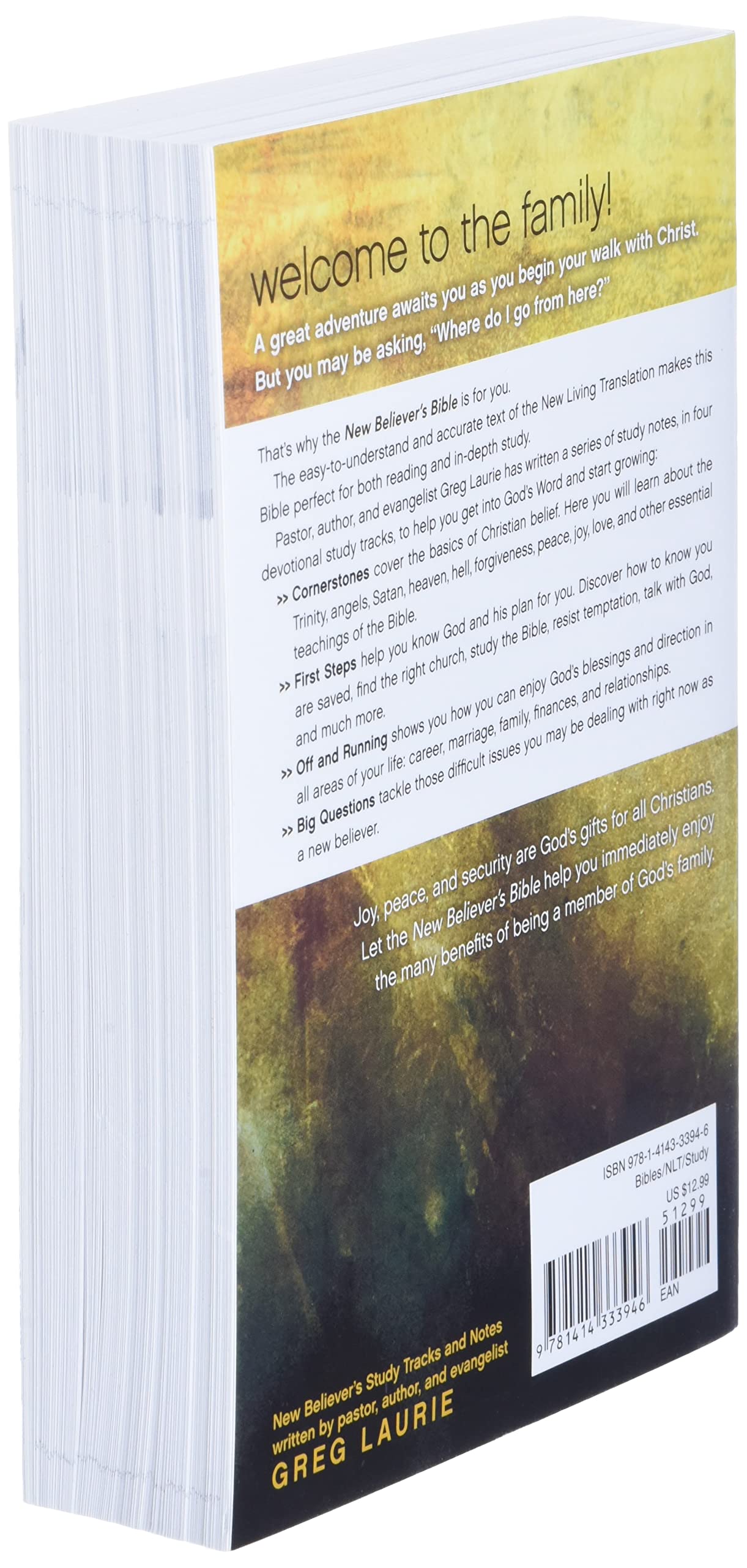 The New Believer’s Bible is uniquely designed to help new Christians read, study, and understand the Bible. It includes features that help new believers develop and deepen their faith while providing a foundation for their new life in Christ. The easy-to-understand and accurate text of the New Living Translation makes the New Believer’s Bible perfect for both reading and in-depth study. Pastor, author, and evangelist Greg Laurie has written a series of study notes, in four devotional study tracks, to help new believers get into God’s Word and start growing.