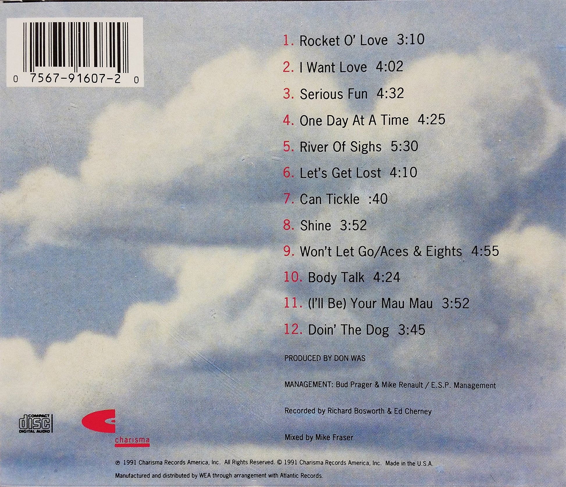 Serious Fun Song Track Listing: 1. Rocket O' Love 3:10 2. I Want Love 4:02 3. Serious Fun 4:32 4. One Day At A Time 4:25 5. River Of Sighs 5:30 6. Let's Get Lost 4:09 7. Can Tickle 0:40 8. Shine 3:53 9. Won't Let Go/Aces & Eights (Medley) 4:55 10. Body Talk 4:24 11. (I'll Be) Your Mau Mau 3:52 12. Doin' The Dog 3:55, ISBN13:B00000DP7Y ISBN10:B00000DP7Y Material Type:audioCD