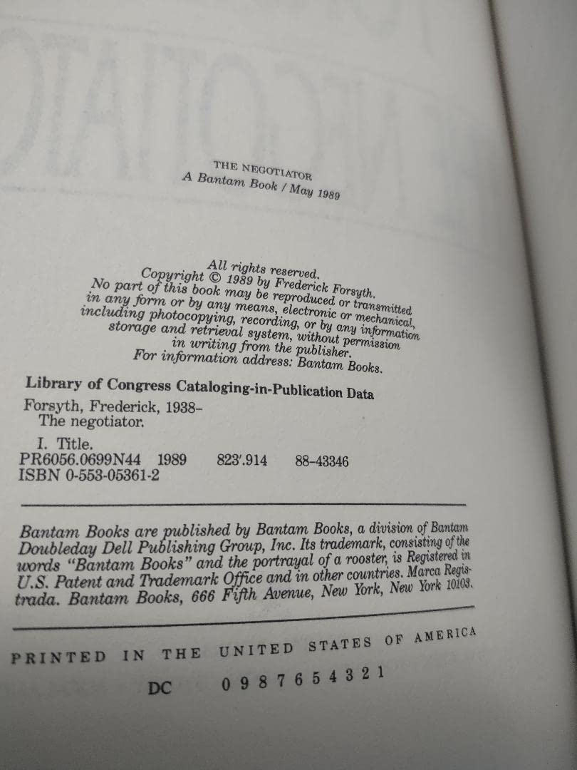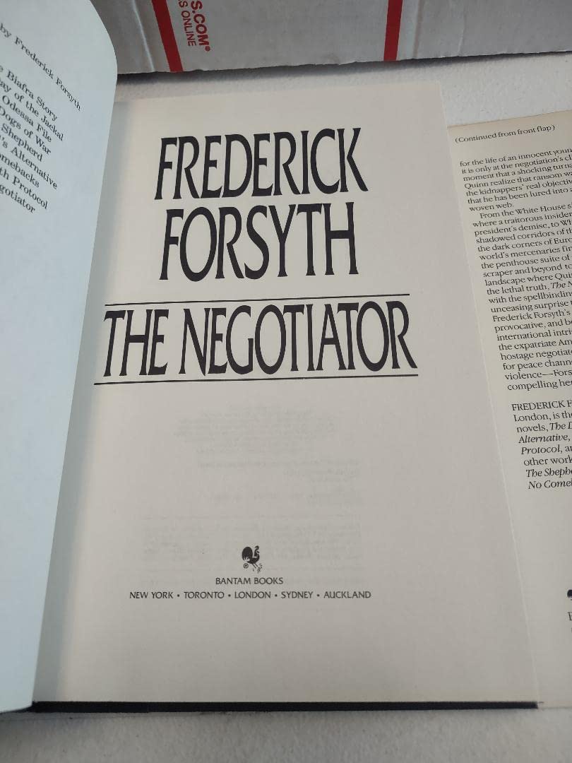 Frederick Forsyth, master of the international thriller, retums with an electrifying story of a man of immense power and a conspiracy to crush the President of the United States. Only one man--Forsyth's most unforgettable hero yet--can prevent the plan from succeeding. His name is Quinn. He is the Negotiator.President Cormack is bent on a signing a sweeping U.S.-Soviet disarmament treaty, and the master conspirator is determined to stop him. The kidnapping of a young man on a country road in Oxfordshire is but the first brutal step in the explosive plot engineer the president's destruction. Enter Quinn. Quinn plays the kidnappers like a master musician. . . until, in a shocking tumabout, he discovers that ransom was not their objection after all--and that he has been lured into a cunningly woven web. Now he must draw upon his deepest strengths--to save not only the victim but the entire free world.