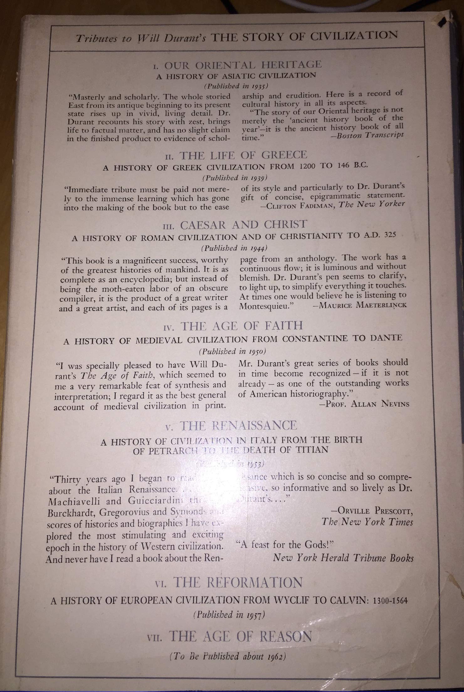 The Story of Civilization, Volume VI: A history of European civilization from Wyclif to Calvin: 1300-1564. This is the sixth volume of the classic, Pulitzer Prize-winning series., ISBN13:9781567310177 ISBN10:1567310176 Material Type:hardcover