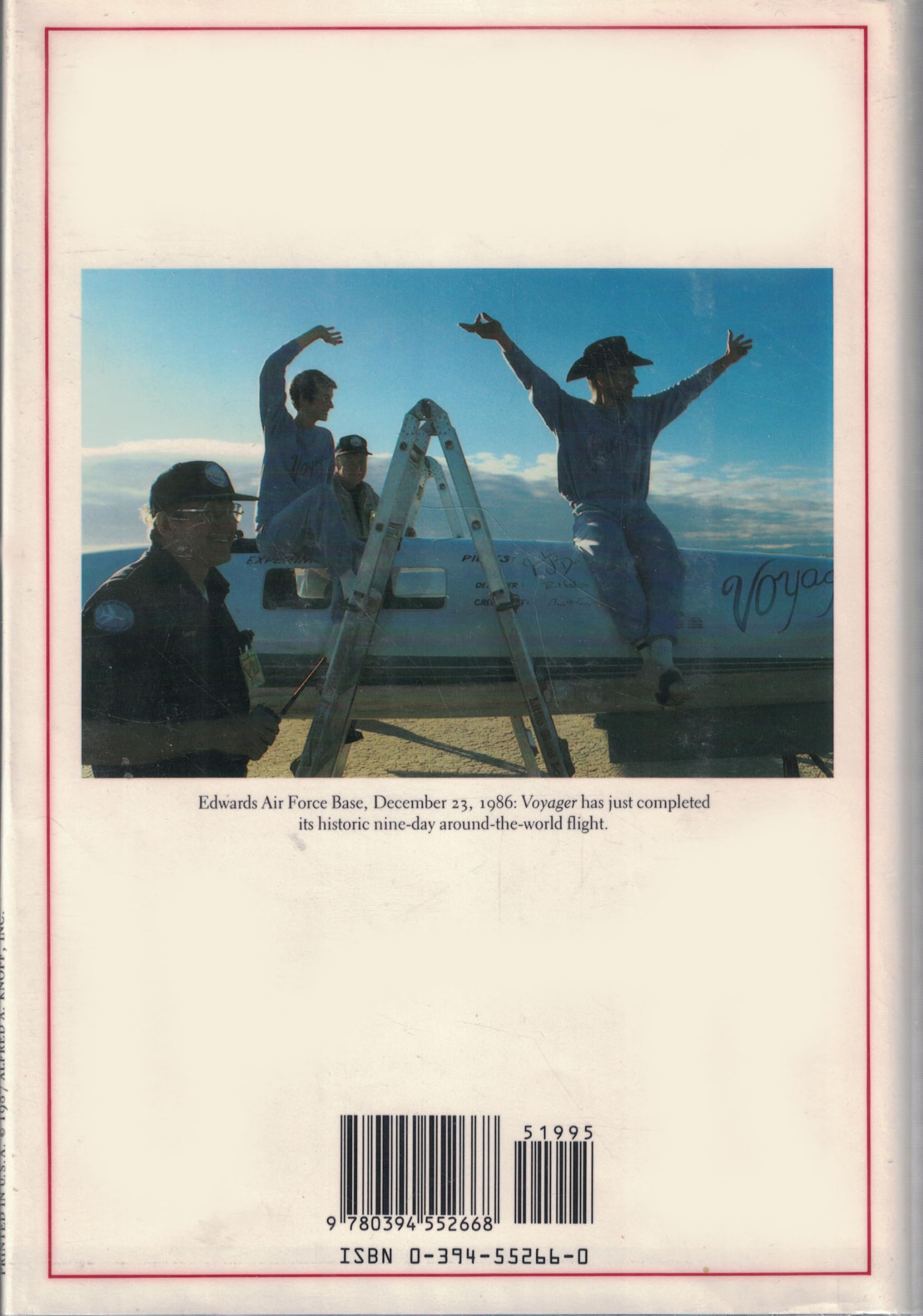 The two fliers who made it happen tell their own stories of the designing and building of the Voyager, and the first circumnavigation of the world without refuelling. 16 color and 48 black-and-white photographs., ISBN13:9780394552668 ISBN10:0394552660 Material Type:hardcover