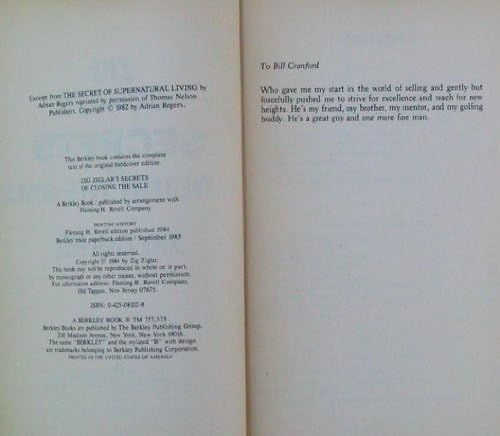 Learn the secrets of persuasion and successful salesmanship from bestselling author Zig Ziglar in this inspirational book. Doctors, housewives, ministers, parents, teachers...everyone has to sell their ideas and themselves to be successful. This guide by America’s #1 professional in the art of persuasion focuses on the most essential part of the sale—how to make them say Yes, I will! Zig Ziglar lets you in on the secrets of his own sure-fire, tested methods: • Over 100 successful closings for every kind of persuasion • Over 700 questions that will open your eyes to new possibilities you may have overlooked • How to paint word pictures and use your imagination to get results • Professional tips from Americas 100 most successful salespeople Do what millions of Americans have already done—open this book and start learning from Zig Ziglars Secrets of Closing the Sale!, ISBN13:9780425081020 ISBN10:0425081028 Material Type:paperback